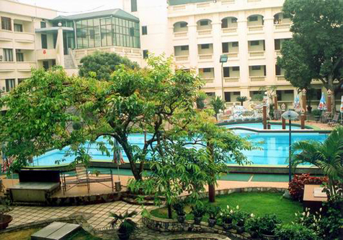 The large swimming pool and trees in Army Hotel that surround it are a couple of features that make the lodge o??ne of the prettiest in Hanoi.