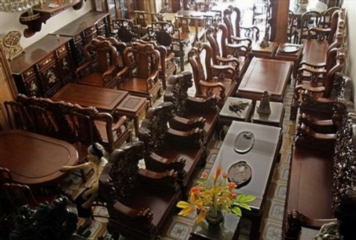 However, the festival no longer is permitted since the lighting of fire crackers is prohibited nationwide. Today Dong Ky village is engaged in making carved hardwood furniture in both private and state run workshops. The craftsmanship is superb, the hardwood used for the large pieces of furniture is ebony, iron, and lat wood Canary wood (Vang Tam wood) is used for small, light pieces and patterned furniture. The most common pieces are tables, chairs, cupboards, and carved beds.