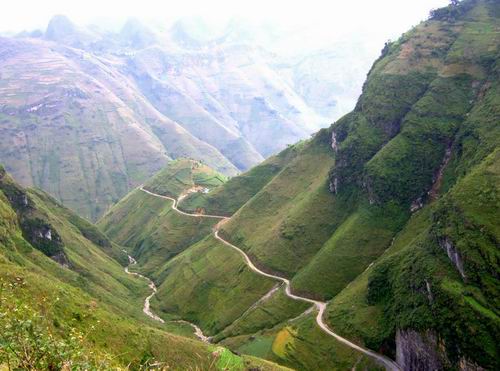 Dong Van, is a 15-kilometer canyon road above the Nho Que River, which weaves its way like a silver ribbon through limestone ravines.
