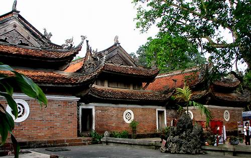 in Hanoi, also known as Sung Phuc Pagoda, consists of three single level structure-built in descending order on a hillock said to resemble a buffalo. The figures representing 'the conditions of man1 are carved from jackfruit wood, many dating