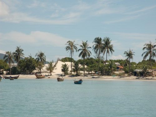 Trang city. There is a sand hill that is 18km long, situated between the main land and two islets creating a bay with a very beautiful landscape.