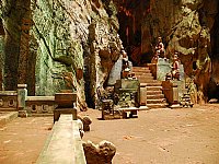 and blocks of carved stone of Cham origin in these caves. Near one of the altars is a
