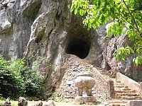 small altar inside. Nearby, another path leads to Hoa Nghiem, a shallow cave with a