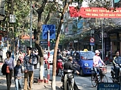 I weave down Doi Can- around basket ladies carrying their heavy wares over their shoulders who cross the road as nimbly as they can while carrying 20 kg of fruit in baskets on either side, balanced deftly on the bamboo pole across their neck; around people walking ever-so-slowly, letting the traffic flow around them as they try to carefully cross the road to the other side; around kids cycling slowly along on their way to school, bag slung over their blue and white uniformed shoulder; around other motorbikes with heavy loads on the back; I slow down as the big truck behind me hoots insistently, warning us all to move-it or be moved; I take an extra wide berth as I pass the big Number 9 bus that could pull out carelessly into the traffic at any time; I swerve slightly when I hear the booming air horn of a car trying to get past us smaller motorists; avoid being clipped by teenage hoons who are weaving ridiculously quick between the smallest space in traffic; and move around a motorbike that is driving towards me, but in my lane, he?s driving the wrong way down the right lane, but nobody cares.