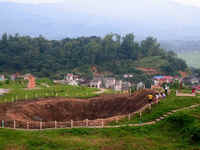 villages dot the hillsides and undulating terrain make for an
